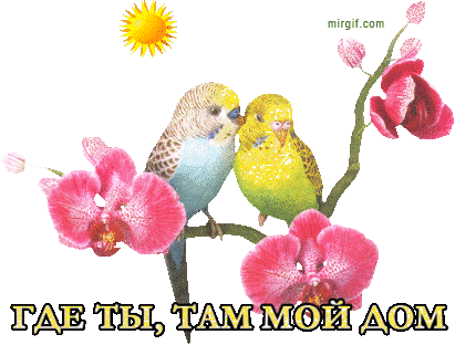Влюбленная парочка волнистых попугайчиков знает, что самое главное – быть вместе. И тогда любая веточка станет родным...